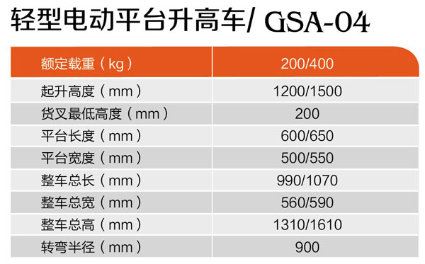 輕型電動(dòng)平臺(tái)升高車(chē)GSA-04