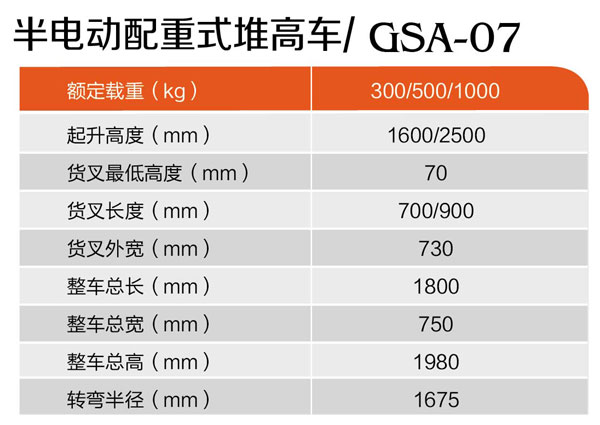 半電動配重式堆高車GSA-07