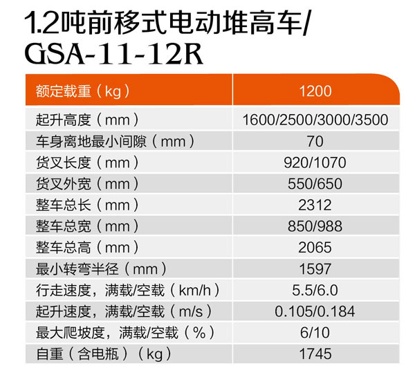 1.2噸前移式電動堆高車GSA-11-12R