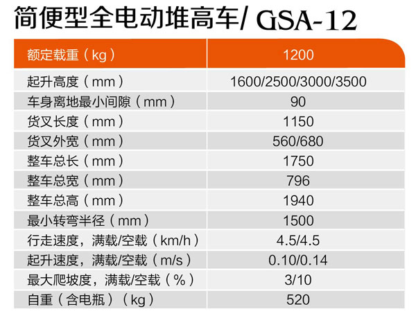 簡(jiǎn)便型全電動(dòng)堆高車(chē)GSA-12