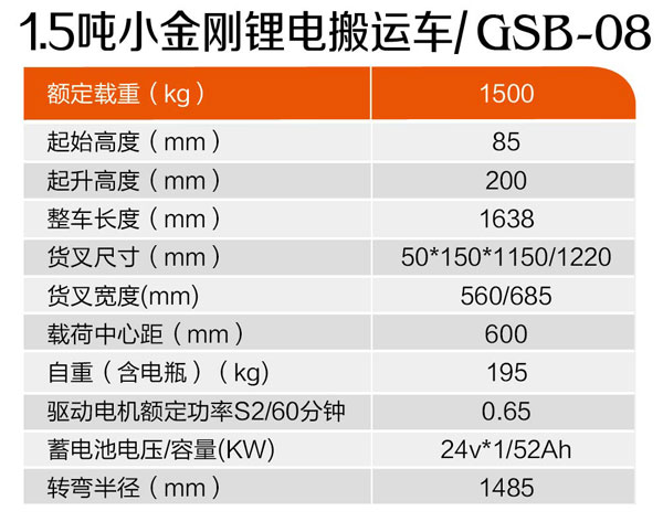 1.5噸小金剛鋰電搬運車GSB-08