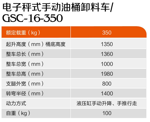 電子秤式手動(dòng)油桶卸料車GSC-16-350
