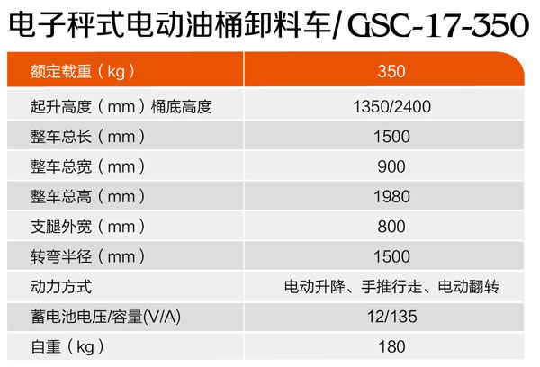 電子秤式電動油桶卸料車GSC-17-350