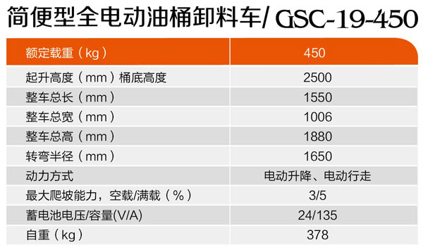 簡便型全電動油桶裝卸車GSC-19-450